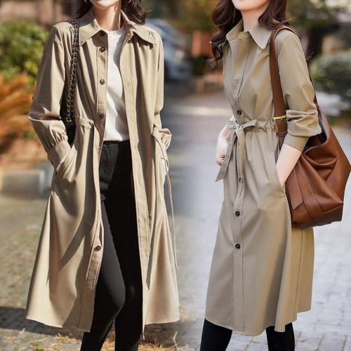 [오너클랜]인기상품 간절기 트렌치코트 롱 자켓 원피스 봄 가을 하객룩 정장 스타일 [WFLLSVK_260305]