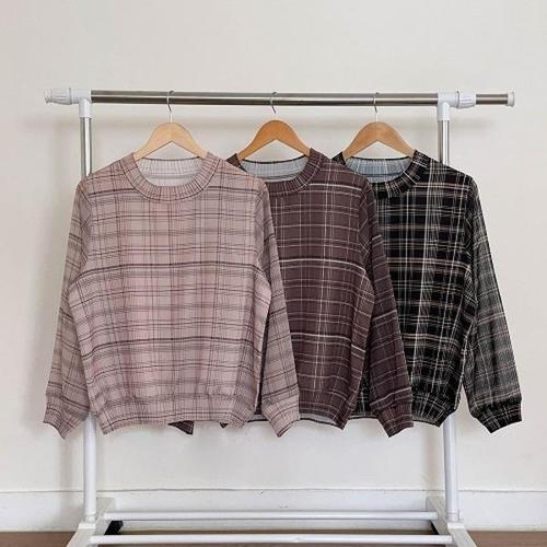 [다잇템][다잇템] 여성 롱슬리브 가을하객룩 격자 플리츠넥 비침 블라우스_22959114_588872