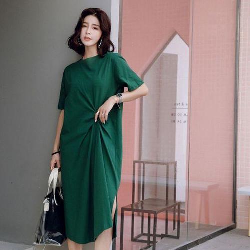 [에이치플러스몰]꼬임 반팔 여유핏 롱원피스 여름 원피스 여유핏원피스
