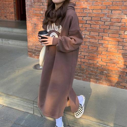(스타일하우스) 원피스 OPS 일리 여성 롱 후드원피스 기모 캐주얼 티셔츠 3컬러