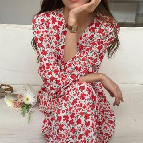 휴가 원피스 슬리브 긴팔 가을 플라워 롱 봄 WFLMT83