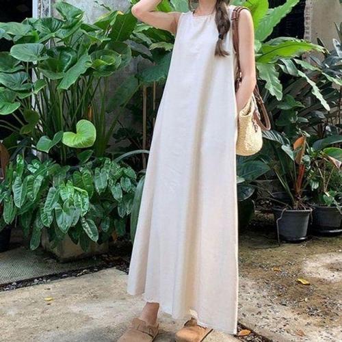 [에이치플러스몰]심플 여름 캐주얼 여성 롱 필수템 뒷트임 원피스 A라