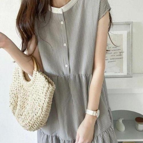 반팔롱 허리 조임 라이트 캐주얼 원피스 면 스 WFLMT55
