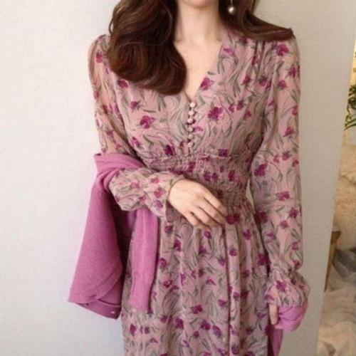롱티 플라워 맥시 원피스룩 긴팔 캐주얼핏가벼운 WFLMSR6