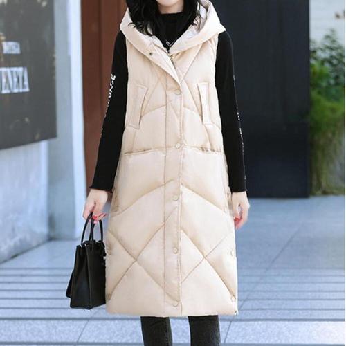 [에이치플러스몰]여성 봄가을 간절기 롱패딩 후두 조끼 스타일