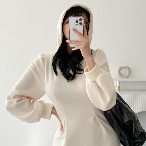 베루라 허리밴딩후드원피스 반집업긴팔미디원피스 헤일락후드원피스