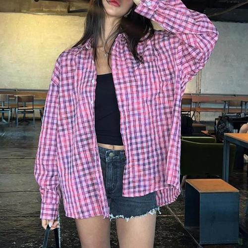 [다잇템]여자 체크남방 박시핏 롱슬리브 셔츠 (16831782A)