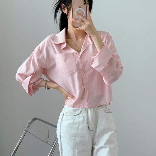 [다잇템]여자 크롭남방 주머니 롱슬리브 셔츠 (19278973A)