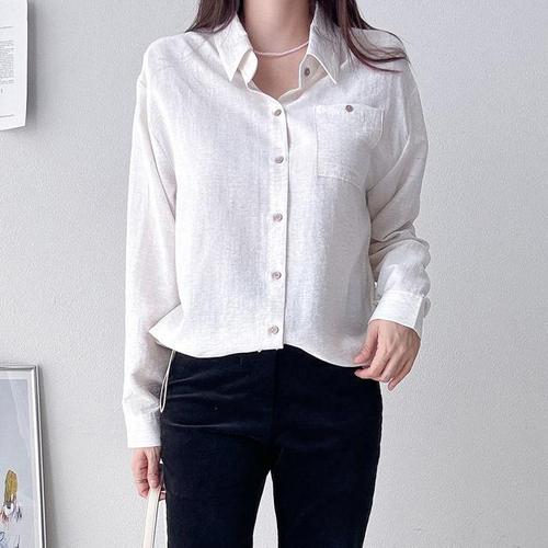 [다잇템]여성 단가라 얇은 롱슬리브 면원단 봄여름 셔츠