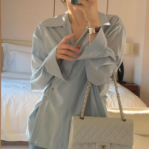 [다잇템]여자 롱슬리브 하늘색 랩블라우스 힙커버 셔츠 (12473391A)