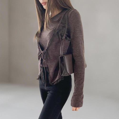 여성 코디 코르셋 리본 롱슬리브 스트랩 니트