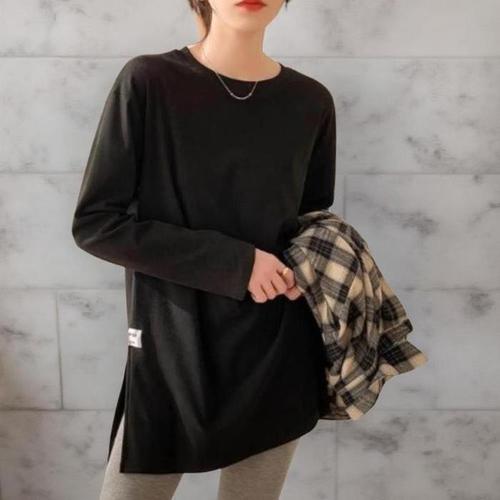 [다잇템]여성 빅사이즈 롱슬리브 원컬러 티셔츠 (42083258A)
