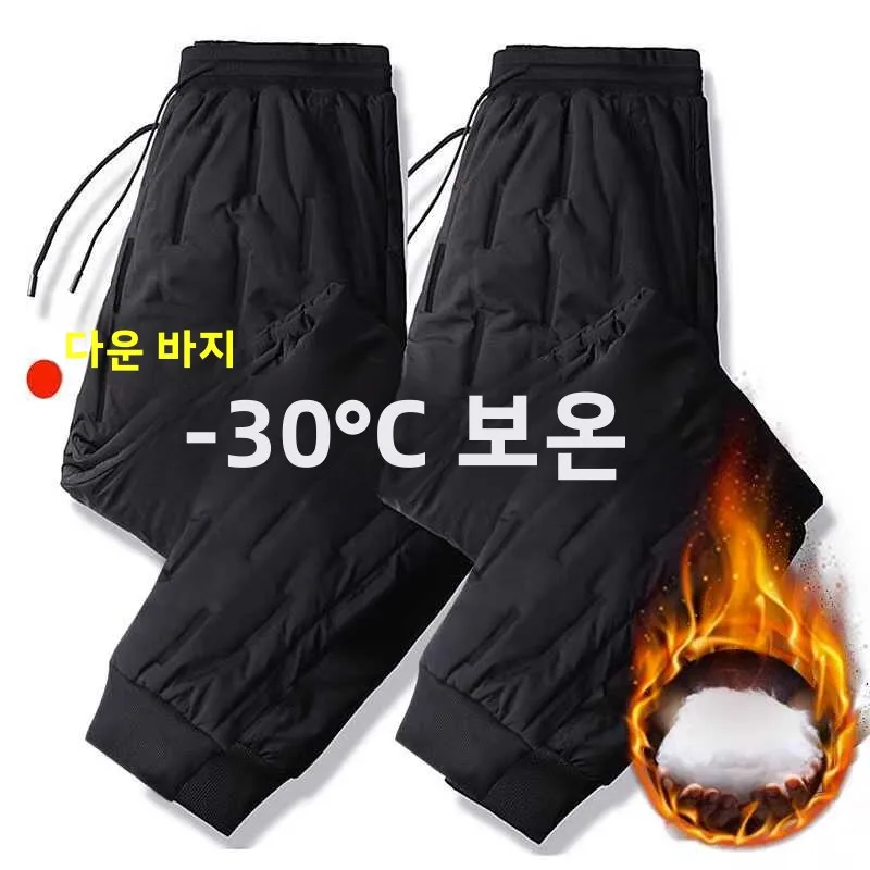 남성용 두꺼운 플리스 안감 다운 코튼 팬츠 작업용 가을 겨울 보온 외출복 캐주얼 롱 바지