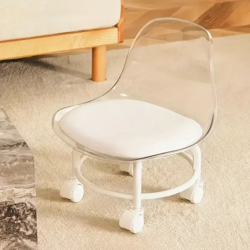 TEMU 휠이 달린 하얀 투명 플라스틱 스토올 - 집과 사무실 사용을 위한 소형, 휴대용, 경량 및 내구성, 현대적인 디자인, 거실용 스토올, 다용도 좌석 옵션, 현대적인 좌석, 부드러운 마감