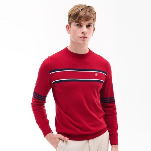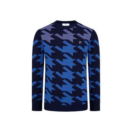 [루이까스텔]남성 컬러 배색 자카드 라운드 스웨터