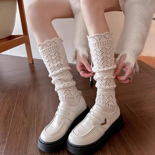 TEMU 무늬 가을/겨울용 와이드 레그 JK 스타일 따뜻하고 매운 학원 스타일 종아리 양말 한 쌍