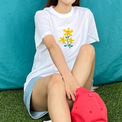 [험블][험블] 데이지 프린팅 라운드 레이어드 오버핏 반팔티셔츠 (8040170A)