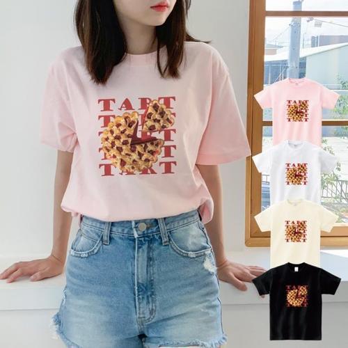 [험블][험블] 파이 프린팅 오버핏 여자 면 반팔티셔츠 (8692479A)