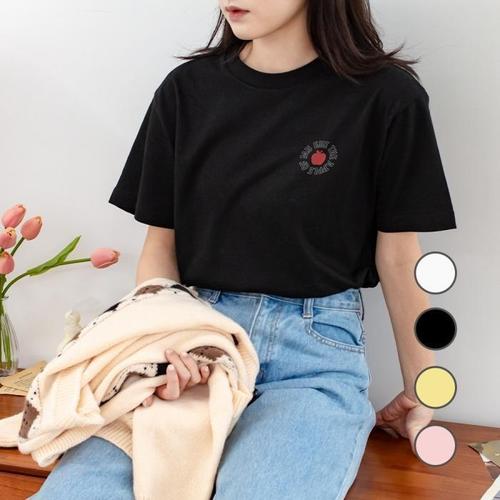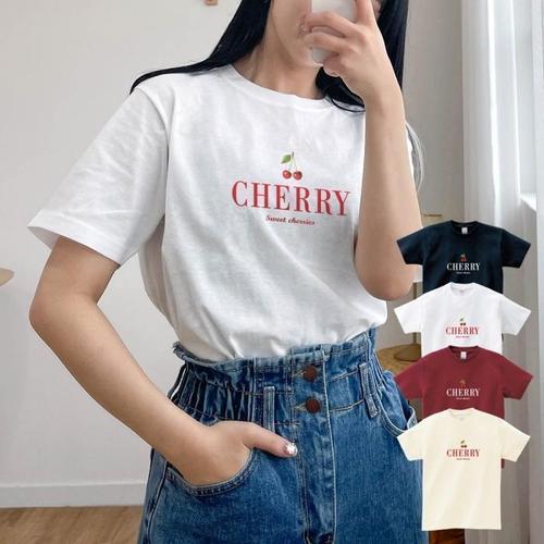 [험블][험블] 체리 레터링 루즈핏 여자 라운드 반팔티셔츠 (8665075A)