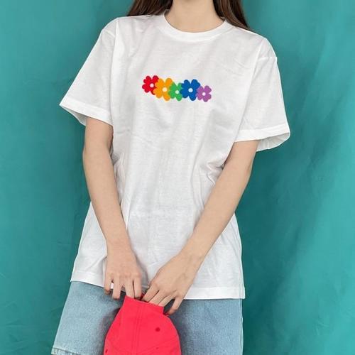 [험블][험블] 레인보우플라워 프린팅 라운드 오버핏 반팔티셔츠 (8015495A)
