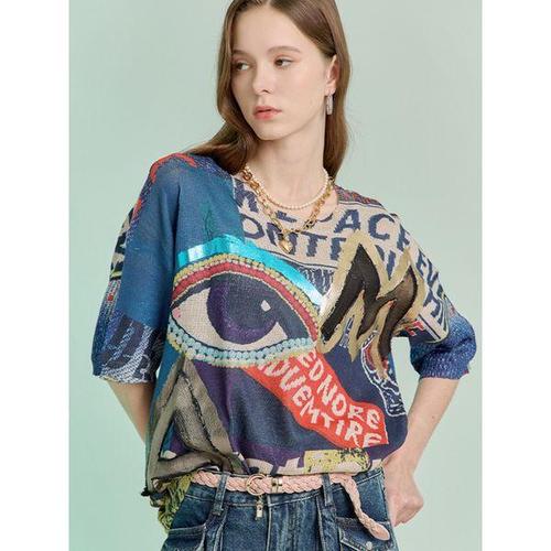 [마쟈]팝아트 레터링 프린팅 루즈핏 라운드 반팔 니트