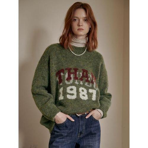 [마쟈]레터링 멜란지 울혼방 루즈핏 라운드넥 니트