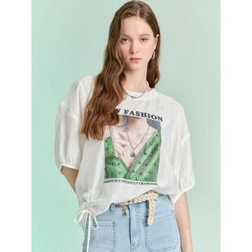 [마쟈]큐빅 네크리스 프린트 스트링 루즈핏 블라우스