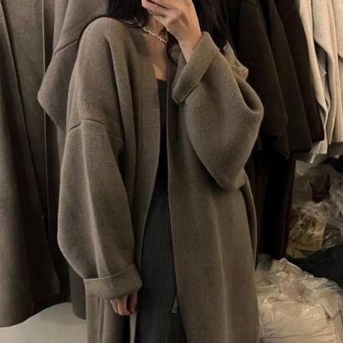COSYEVNO 여성 가디건 겨울 빅 사이즈 루즈핏으로 스타일리시하게 따뜻한 빈티지 롱 코트 CXJks-10