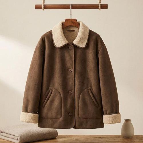 ANYOU 스웨이드 재킷 후리스 여성 겨울 루즈핏 무스탕 양털 겨울 신상 빅터틀넥 램스울코트 여오버핏BF풍 무스탕 일체형 라이더 자켓 붐