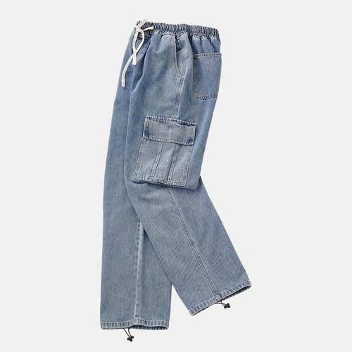 [이카룩]IKALOOK 봄가을 루즈핏 밴딩 카고 데님 팬츠 DJN123