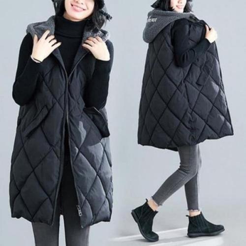 [셀럽하우스]후드 PHYB8627 양털 루즈 겨울 롱패딩 누빔 퀼팅 조끼 여자 여