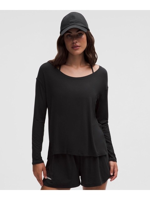 [룰루레몬] 실크어필 사이드 슬릿 롱슬리브 - BLK