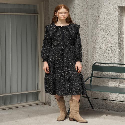[르샵]플라워 패턴 프릴 카라 긴팔 원피스 (DP3OW023A)