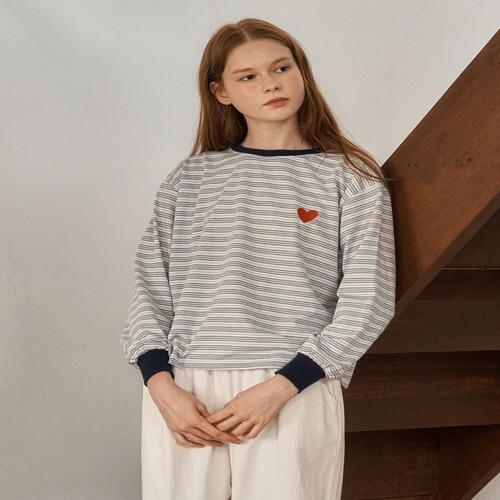 [르샵]라운드넥 스트라이프 하트 자수 긴팔 티셔츠 (DP3LW020A)