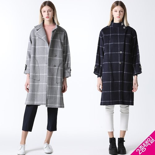 [홈쇼핑방송/르오트(LeOT)] 도로시 스텐카라 윈도우 체크 울코트-사이즈 55~88다양