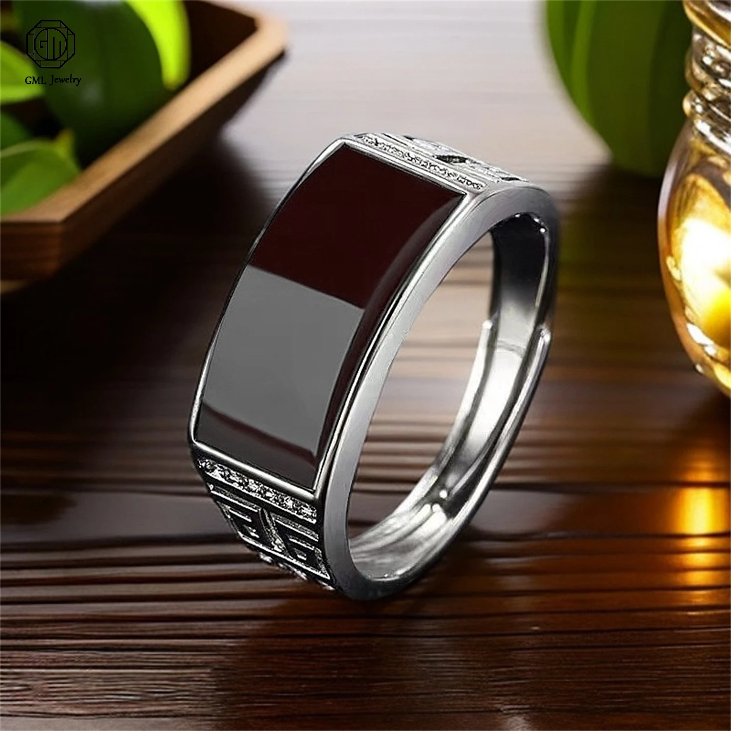 블랙 오닉스 드래곤 패턴 링 오픈 조절 가능한 밴드 정교한 컷아웃 디자인 빈티지 고딕 주얼리 남성용 선물
