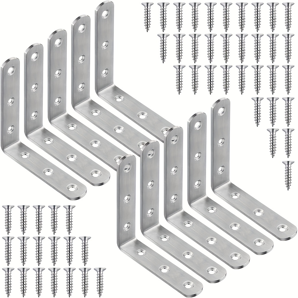 TEMU [스테인리스 스틸 코너 브레이스] 70개 스테인리스 스틸 직각 코너 코드 L자형 고정 브래킷 및 나사 세트 | 10개 코너 코드 & 60개 나사, 가구 연결 부품, 강화 코너 브레이스