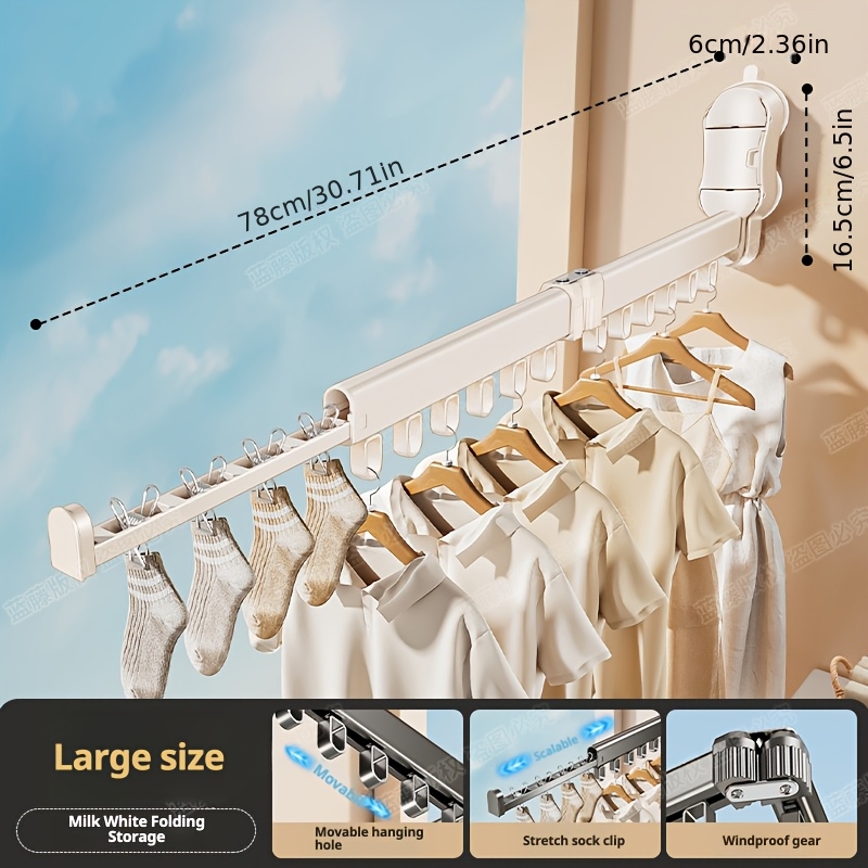 TEMU 헤비 듀티 벽걸이형 접이식 빨래 건조대, 스테인리스 스틸 조절식 세탁 건조대 (드릴 설치 방식), 실내외 호텔 스타일 옷걸이 (발코니 및 욕실용), 빨래 건조대