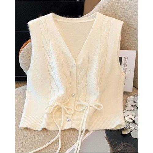 [신상오픈런]여성 리본 장식 펀칭 크롭 니트 조끼
