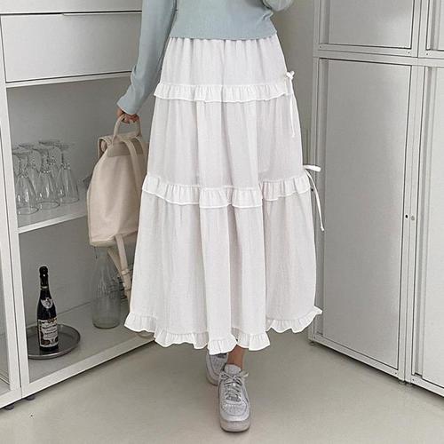 [다잇템]여성 리본 고무줄 롱 티어드 귀여운 스커트 (31926290A)