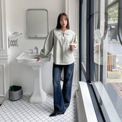 [에이치플러스몰]클래식 인기 블라우스 여성 레이스 감성 데일리 리본