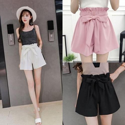 [샵앤]여성 리본 슈가핀턱 루즈핏 여름 밴딩 반바지 PIC-WPT-20743-소라