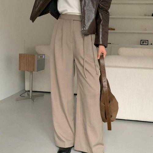 옷자락 / 여자 가을 하객룩 리본스트링 투핀턱 와이드 슬랙스