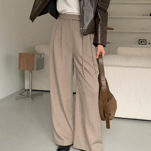 [옷자락]여자 가을 하객룩 리본스트링 투핀턱 와이드 슬랙스