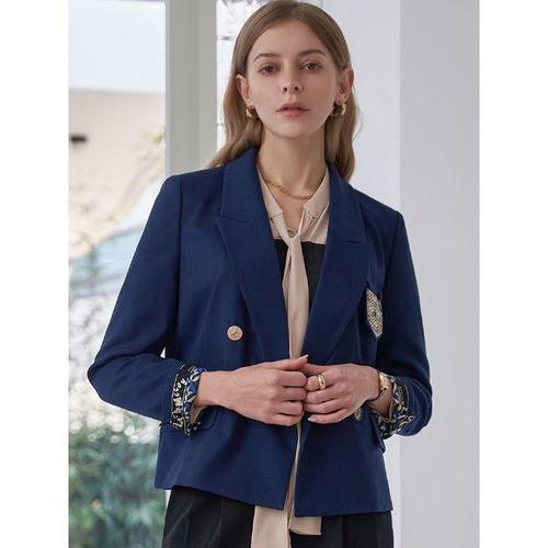 [르니앤맥코이]리본 자수 아웃 포켓 롤업 배색 더블 자켓 MN04JK205HJY