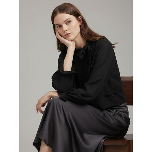 엘케이트 여성 블라우스 실키 리본 레이어드 카라 쉬폰 시스루 랩블라우스 LCC003