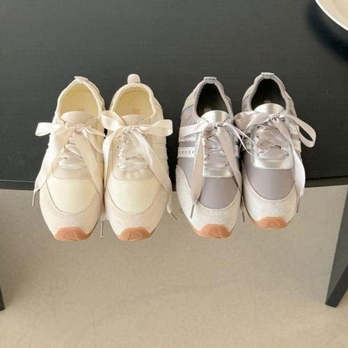 [옷자락]여자 발레코어 콤비 소가죽 메쉬 리본 스니커즈