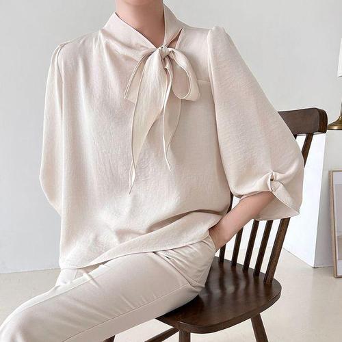 [옷자락] 여자 가을하객룩 리본 스카프 꼬임 칠부 박시 블라우스
