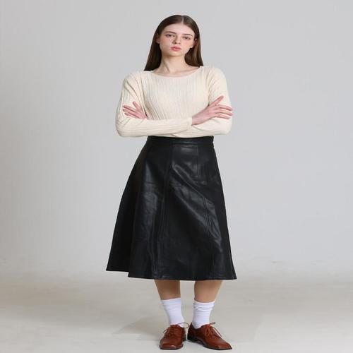 [리스트][오조크(OZOC)] 페이크레더 절개 A라인스커트 (택가격 85000원)