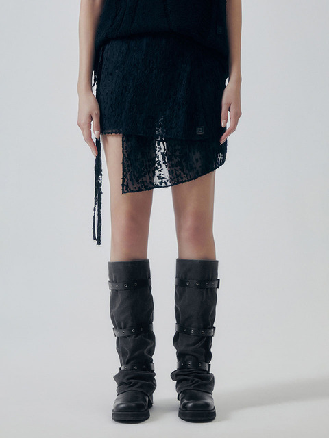 [트리밍버드] 에테리얼 레이스 랩 레이어드 스커트 블랙